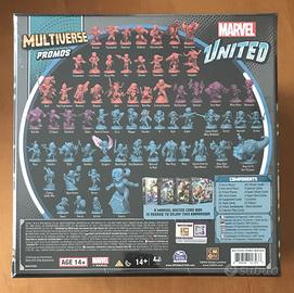 L'oggetto in vendita è la versione Kickstarter del gioco da tavolo in inglese Marvel United Multiverse, completo del gioco base e di tutti gli Stretch Goal e le esclusive sbloccate durante la campagna KS, contenuti nella Promo box.