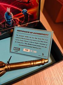 Vendo replica ufficiale da collezione della leggendaria freccia yaka (yaka arrow) di yondu udonta, come vista nel film marvel studios guardiani della galassia vol. 2. Il set è un'edizione limitata per veri collezionisti: questo esemplare è il numero 1.159 di soli 2.000 pezzi prodotti a livello mondiale. Caratteristiche del set: - yaka arrow pin: replica della freccia in formato spilla gigante (lapel pin) con finitura dorata, lunga circa 20 cm. Stato del prodotto: condizioni: ottimo stato, mai utilizzato, conservato sempre nel cofanetto protettivo. autenticità: prodotto ufficiale distribuito da amerang e realizzato da salesone llc. Autenticità: documento ufficiale numerato che attesta l'originalità del prodotto su licenza marvel. Confezione premium: cofanetto da collezione "the infinity saga" con chiusura magnetica e interno a tema con l'artwork originale dei guardiani della galassia. Un pezzo raro e di grande impatto visivo, perfetto per completare la bacheca di un appassionato marvel o per un cosplay di altissimo livello. Spedizione rapida e imballaggio professionale per garantire che la scatola arrivi intatta. disponibile per qualsiasi domanda o foto extra! ACCETTO TRADE CON MATERIALE POKEMON e ONEPIECE SEALED