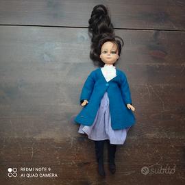 Vendo bambola d'epoca marcata Ratti raffigurante Mary Poppins. La bambola risale agli anni 60 ed è in vinile e plastica, condizioni come da foto allegate, manca cappello, ombrello , scarpe e borsa.