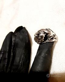 Particolare anello d'argento 925 raffigurante due pantere che lottano: bello!Originale anni'90 fatto a mano,un bel monile artistico, un pezzo unico.Misure : 17,diametro interno cm 1,7,condizioni perfette ,pezzo unico.Spedisco ovunque,la consegna avviene tra le 24h e i 5 giorni secondo la formula che sceglierete.
