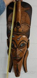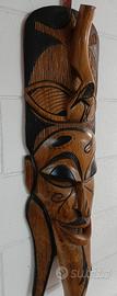 Maschera in stile africano completamente in legno massiccio intagliata a mano.