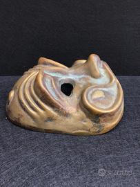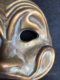 Vecchia maschera anni 50 di Arlecchino in ottone con patina del tempo, si può appendere o lasciare appoggiata sul mobile o scrivania, la maschera è fatta molto e bene è inutile dire che si tratta di un oggetto per collezionisti e amanti della più famosa maschera del teatro Italiano e del mondo, misura 16x16x6 cm. Pesa 1,2 kg. Tenete presente che una maschera di carnevale fatta in cuoio costa dai 250? in su......