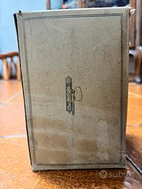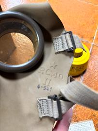Maschera antigas per popolazione civile del 1940 (modello PC 40) completa di filtro, istruzioni e sapone antiappannante, in custodia di cartone originale