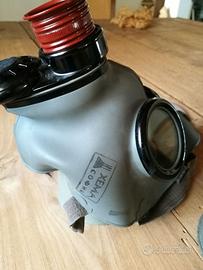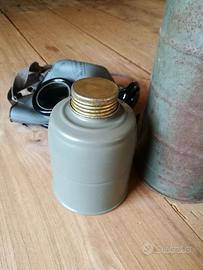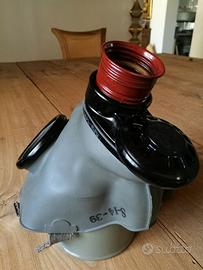 Maschera antigas in dotazione ai civili a Sofia in Bulgaria durante la seconda guerra mondiale. Originale. Ancora da usare. Il tubo originale di ferro che la contiene presenta ruggine superficiale. Spese di spedizione a carico dell'acquirente.