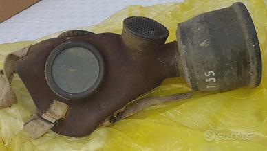 maschera antigas italiana in cuoio, II guerra mondiale. in ottimo stato di conservazione.