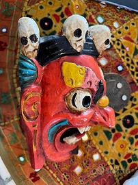 Maschera Artigianale di Mahakala, una divinità del Buddismo tibetano. Questo pezzo unico, realizzato a mano oltre 50 anni fa, è ricco di storia e spiritualità, perfetto per collezionisti, amanti dell?arte sacra orientale o per chi cerca una protezione energetica autentica.