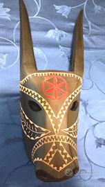 maschera in legno raffigurante " Su boe " del carnevale tipico di Ottana.