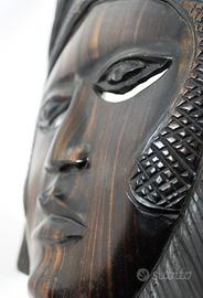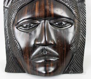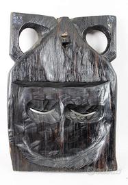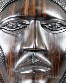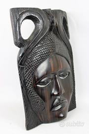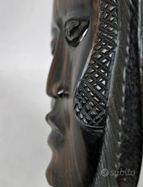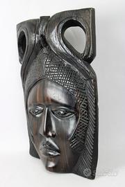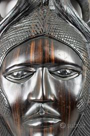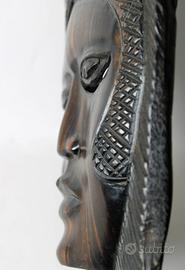 Vecchia e piacevole maschera in legno di ebano Makassar, intagliata interamente a mano, della etnia " Baulé " in Costa d'Avorio/ Senegal.