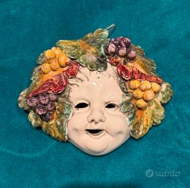 Maschera in Maiolica italiana raffigurante bacco da bambino antica da muro