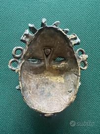 Maschera passaporto in bronzo - arte africana Bamoun Camerun misure: 14,5 x 12,8 cm circa