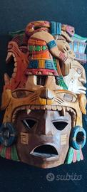 Maschera precolombiana originale, realizzata in legno artigianalmente e dipinta a mano, dimensioni 25x20cm.