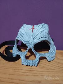 maschera di Salmo realizzata in resina e dipinta a mano, taglia standard con velcro già incollato per poterla indossare.