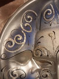 Vendo maschera in ceramica di Venezia colore blu con glitter argento - ha il viso del Sole e il profilo della Luna - un nastro blu per appenderla. Diametro cm 22 condizioni ottime . Vige regola visto piaciuto e preso. No perditempo e affaristi grazie!!!