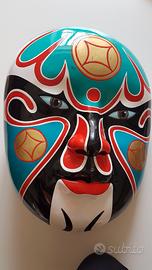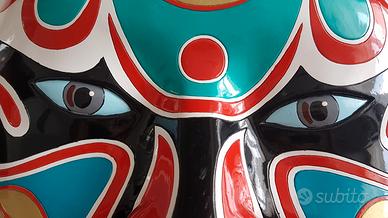 Grande maschera Teatro Opera cinese. Originale cinese. Acquistato personalmente in Cina del Sud, Guangzhou,Canton. Maschera classica del Teatro dell'Opera cinese. Realizzata in resina molto resistente. Dimensioni altezza 48, larghezza massima 35. Ha un pratico gancio sul retro (foto 2 e 3 che si presta ad ogni tipo di attacco a parete, o può essere poggiata su un piano. La foto con la mela e la pera è per rendere piu' comprensibile la dimensione. Altre foto disponibili