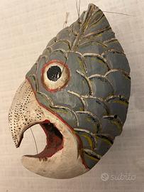 Un oggetto della metà del novecento molto particolare, ricavato da un blocco di legno leggero ma molto solido, intagliato dipinto a mano, comprato a Oaxaca deJuarez. Introvabile.