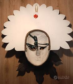Bellissima maschera veneziana artigianale indossabile. La maschera può essere appesa alla parete o indossata. Dimensioni cm. 57 x cm. 43.