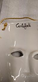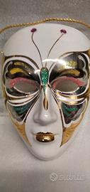 vendo maschera veneziana in ceramica, viso con farfalla dipinta a mano dall'artista che ha firmato dietro, misure cm18x15, predisposta per essere appesa, nuova.