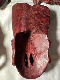 lotto di n.5 maschere in legno (probabilmente in teak fatte a mano), espressione dell'arte orientale,