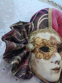 Coppia di maschere decorative veneziane, una rossa e una nera 100% made in Italy da Manifattura Artigianale Veneziana Rivestite di tessuto, ottime condizioni. Dimensioni circa 30x15