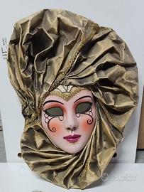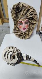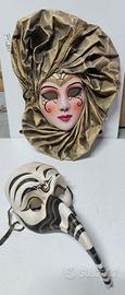Coppia di maschere in cartapesta, originali veneziane, grandezza naturale, si possono utilizzare indossate o appese per arredamento.