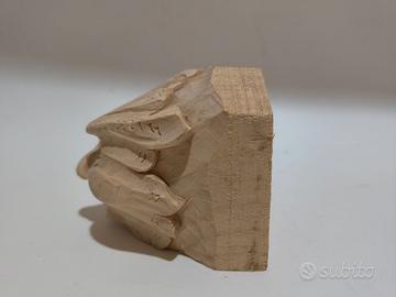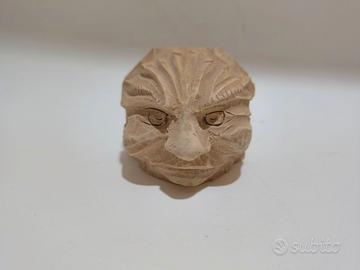 Mascherone decorativo in legno, interamente scolpito a mano da un unico pezzo di legno da scultore siciliano - Materiale: Legno - Tecnica: Scolpito a mano Dimensioni cm 8x 7x 8