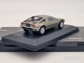MASERATI Merak - 1972 Casa costruttrice: Collezione edicola Maserati collection Scala: 1/43 Colore: Grigio metallizzato Materiale: Metallo pressofuso Confezione: Teca Modello in ottime condizioni - Segnalo mancanza dello specchietto esterno sinistro Tutto come da foto allegate