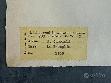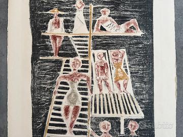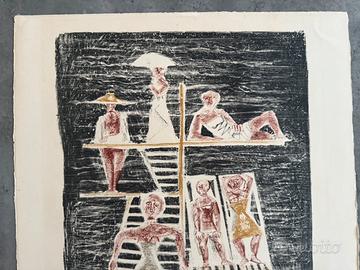 Massimo Campigli (Berlino 1895 - St. Tropez 1971) Titolo: "Il trampolino" Anno: 1954 Tecnica: litografia a colori Misure: cm 55,6x45,4 Firmato, datato e numerato 175/200 in basso Editore L'Oeuvre Gravée, Parigi - Zurigo Stampatore Desjobert, Parigi Al retro etichetta di autentica editore (vedi foto) Pubblicazione: F. Meloni - L. Tavola "Campigli. Catalogo Ragionato dell'opera grafica" Livorno, 1995, n. 155