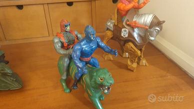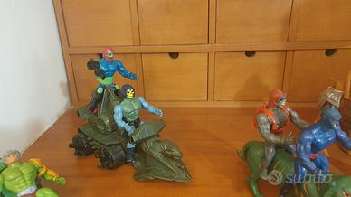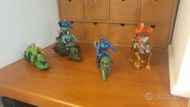 Set di action figure vintage Masters of the Universe Mattel. - Include personaggi e veicoli, 10 pezzi.