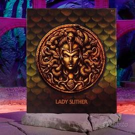Gli Uomini Serpente hanno la loro regina: Lady Slither si unisce alla linea Masters of the Universe Origins. Questa leader degli Uomini Serpente può trasformare la metà inferiore del suo corpo in un serpente per strisciare negli incubi dei Maestri. Lady Slither non è mai stata trasformata in una figure prima d'ora, quindi ogni collezionista dei MOTU vorrà questa vipera velenosa nella propria collezione.