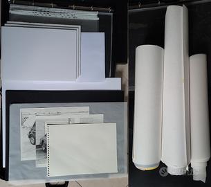 Tutto originale comprato in negozi fisici specializzati. Ideale per studenti, professionisti, appassionati. Usati poco, mai usati o sigillati. Prezzo trattabile in base a cosa compri. o ?65 Copic Sketch 9pz. o ?115 Copic Classic 23pz. o ?115 Copic Various Ink ricariche 19pz. o ?30 Copic Wallet per 36 markers. o ?20 Faber-Castell 12 gessetti pastello dalla composizione di pigmenti pregiati, brillanti, senza oli e cere, made in Germany. o Giotto gessetti colorati e bianchi. o Righello in alluminio 80 cm e altri in plastica. o Squadre, forme per cerchi, ellissi, curvilinee 5pz. o Cartellette A2 in plastica e tessuto, con accessorio da tracolla. o ?15 Cartelletta Faber-Castell A3 in tessuto. o Tubo rigido allungabile con corda a tracolla. o Fogli A2-A3 in diversi colori e spessori. o Rotolo di carta trasparente per disegno tecnico, architettura, ecc. o Blocchi di carta A3: - millimetrata e trasparente. - disegno a pennarelli o matita a grafite, ideali per illustrazioni (vedi foto). - Fabriano 5 colori, 25 fogli. o Fogli A3 bianchi. o Risma fogli gialli A4 1125pz. o Libro H Point per design automotive. o Sketchbook ad anelli e copertina rigida. o Pastelli diversi colori, matite a grafite da disegno, penne e matite di precisione. o Temperamatite elettrico e a manovella. o Calibro in alluminio con custodia. o Compasso con custodia. o Vinavil colla inodore. o Raclette per spalmare e modellare. o Strumento di precisione con filo riscaldabile a batteria per tagliare polistirolo, ricambio incluso. o Pannelli sottili in schiuma con superficie di carta bianca, 1pz A2, 3pz A3.