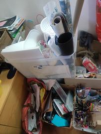 Attrezzi, pennelli di tutti i tipi,carta di tutti i tipi, colle ancora nuove di diversi formati, pannelli di diversi formati, cassetta di legno di tutti i tipi da colorare e completare, tantissimi gadget da applicare ecc ecc