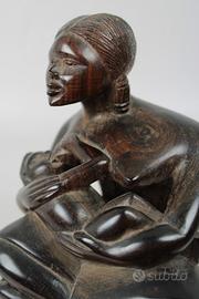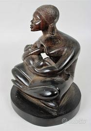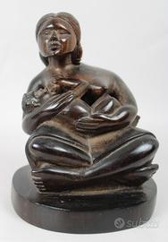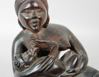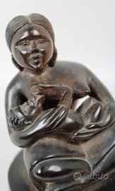 Piacevole statuetta interamente scolpita in legno pregiato raffigurante una maternità.