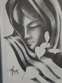 Opera Unica Originale, del Maestro Umberto FERRELLI, " Donna con Velo" del 1974. Matite su Carta. L'opera si vende incorniciata , con cornice elegante a tre sfumature tenui di colore. L'opera e' 40 x 30 in ottime condizioni.
