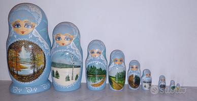 Matriosche originali Russa, fatte a mano acquistate a Mosca nel 1990 dipinte a mano in scala perfetta senza imperfezioni come da foto.