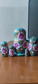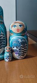 Matrioska originale russa, istoriata con paesaggi invernali, composta da 5 pezzi in legno realizzati artigianalmente e riccamente dipinti a mano su tutti i lati, la bambola più grande misura 18cm. Bellissimo articolo da collezione.