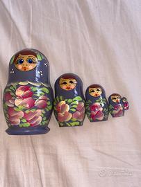 Il set è composto da 5 bamboline di dimensioni decrescenti che si inseriscono l’una dentro l’altra, simbolo di famiglia, tradizione e continuità.