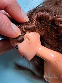 Megara Bambola disney mattel princess vintage, capelli morbidi, le ginocchia cliccano, non ha morsi a mani e piedi né crepe al collo. Come da foto ha un leggero diradamento dei capelli vicino a un orecchio, non mancano ciocche visibili. Un piccolo alone rosa su un interno coscia e una macchiolina bianca sull'altra, lieve difetto ai denti e lieve differenza di colore tra busto e arti.
