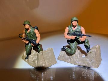 Vendo due soldatini completi di base funzionante. Lanciafiamme e bazooka. Gli oggetti non hanno la scatola. Inoltre regalo altri 3 soldati senza la base di sostegno, uno di essi completo di fucile d'assalto. Gli oggetti sono stati utilizzati, ma in ottimo stato di conservazione.
