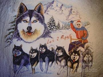 Pietra lavica a colori made in France cm 32 x cm 22. Anni 80, con corda sul retro per appendere. Ottime condizioni.