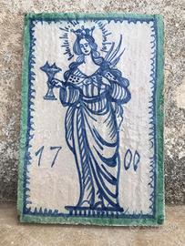 Mattonella mattone riggiola: SANTA ROSALIA PATRONA DELLA CITTA' DI PALERMO (n° 1) E SANT'AGATA PATRONA DELLA CITTA' DI CATANIA (n° 2 e n° 3)
