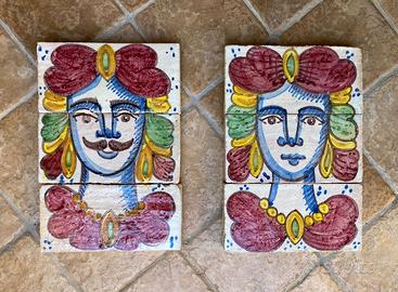 Bellissime mattonelle in maiolica di fornace siciliana sicilia penso Caltagirone, Sciacca o Burgio, realizzate a mano usando il vecchio sistema sia sulla cottura del cotto che sull'invetriatura; sono vecchie rimanenze di magazzino vintage