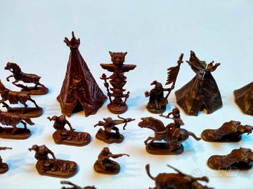 Vendo un grande e affascinante lotto di soldatini vintage in plastica da 25 mm. degli anni '70/'80 che comprende indiani, cavalli, bisonti, tende e totem il tutto in buone condizioni conservative.
