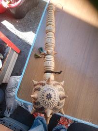 Bellissima mazza decorativa realizzata in legno intagliato a mano ,con dettagli ingisivi e motivi floreale . Oggetto artigianale ideale per arredamento , collezione o come pezzo etnico da esposizione in ottimo stato altezza cm 50 ritiro Milano crescenzago
