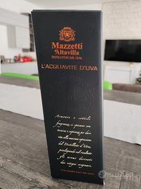 Bottiglia di grappa da collezione inclinata Mazzetti d'Altavilla L'acquavite d'uva invecchiata in barrique nuova con sigillo e confezione originale