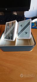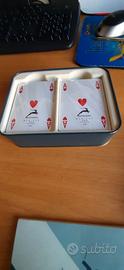 mazzi carte ramino con blocchetto segna punti marca MODIANO scatola in latta, mazzi di carta nuovi impacchettati.