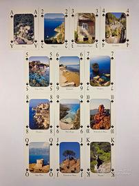 Mazzo di carte da gioco a tema Corsica, composto da 54 carte (52 + 2 Joker). Carte illustrate con immagini e paesaggi della Corsica (località e scorci turistici). Mai utilizzate, scatola originale inclusa.