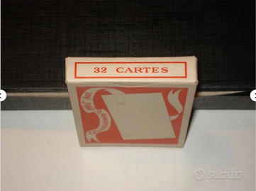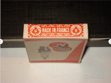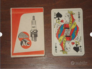 ACQUISTA E RICEVERAI IN OMAGGIO UNA CARTOLINA DA COLLEZIONE !! Mazzo di 32 carte "bougies ac" (candele per auto). Jeu de cartes. Playing cards. Descrizione e caratteristiche: Veniva regalato nelle concessionarie francesi negli anni 80/90. Oggetto più unico che raro. Include il pacchetto e il mazzo a colori non sigillato. Dimensioni del pacchetto: 9 x 6 x 1,6 cm circa. Condizioni: In eccellente stato di conservazione. Pacchetto con qualche normale e lieve smussatura e lieve usura in prossimità dei bordi e delle punte. Mazzo di carte in ottimo stato, molto ben conservato con appena qualche macchiolina scura non invalidante, dovuta più che altro al tempo trascorso e a qualche piccola fonte di umidità con cui è venuto a contatto.