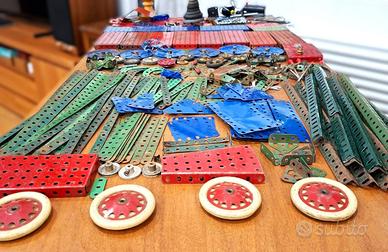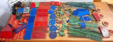 Centinaia di pezzi meccano anni 50-60 in scatola originale rossa senza coperchio come da immagini che fanni parte della descrizione