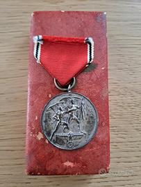 Medaglia con scatola originale istituita l' 1 maggio 1938 commemorativa del 13 marzo 1938 data dell' anschluss dell' Austria al terzo Reich, venne concessa agli Austriaci o ai membri dell' NSDAP austriaco che contribuirono o parteciparono all' annessione della propria madrepatria al Reich. Condizioni come da foto.