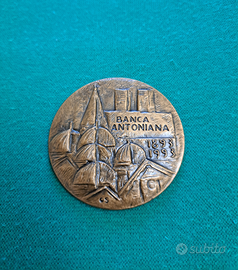Medaglia in bronzo fuso, realizzata nel 1993 da Sgaravatti, a ricordo del centenario di fondazione della Banca Antoniana. Incluso book con storia della banca.
